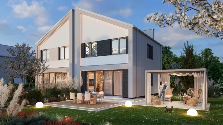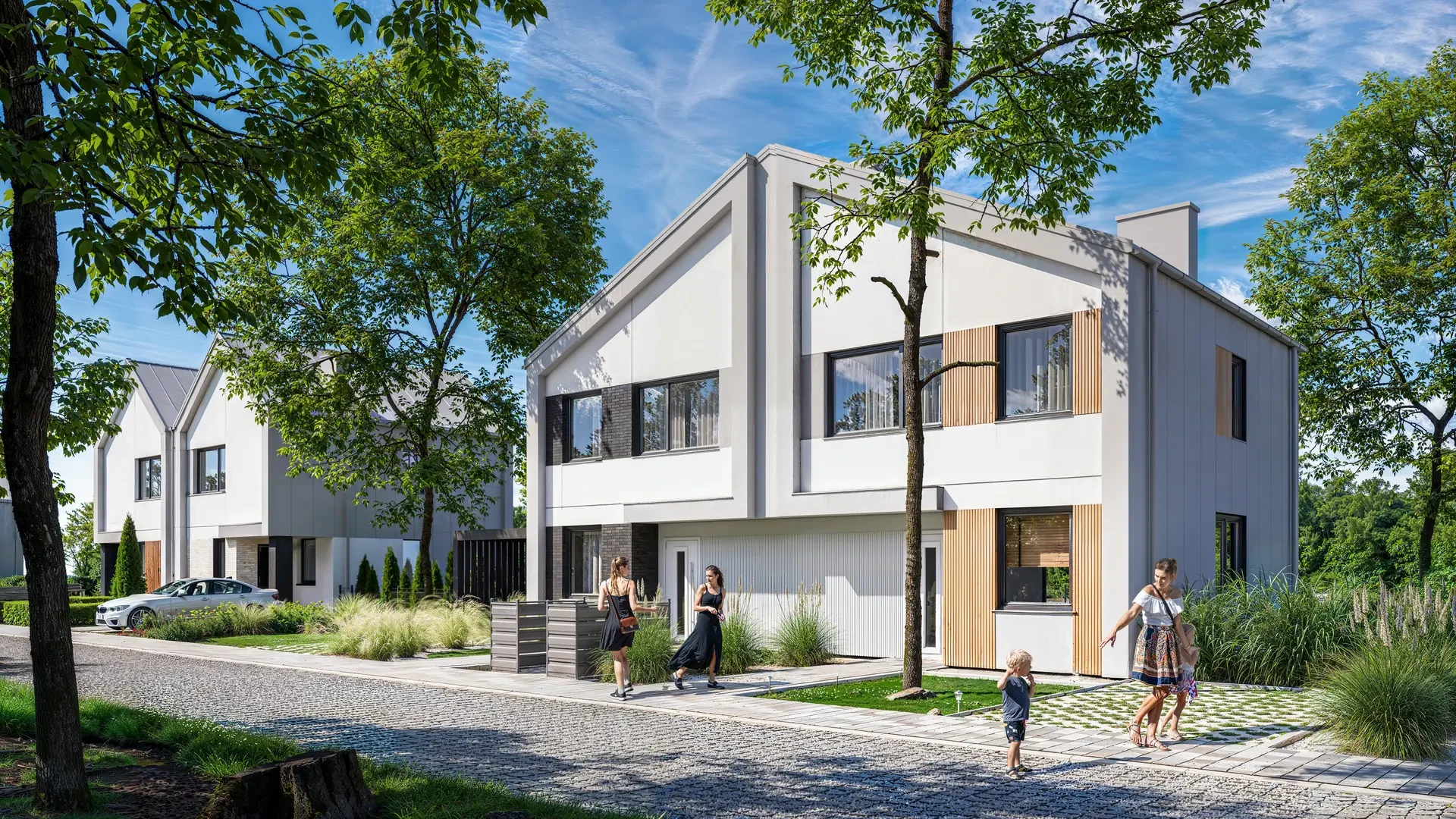 Na osiedlu powstanie 30 domów zaprojektowanych z dbałością o funkcjonalność i komfort. Możesz wybrać między domem o powierzchni 80 m² z czterema pokojami lub domem o powierzchni 90 m² z pięcioma pokojami – oba zaprojektowane tak, by odpowiadały różnym stylom życia i potrzebom nowych mieszkańców. Każdy dom otacza przestronny ogród, który stanie się Twoją prywatną strefą relaksu. Przewidziano także prywatne miejsce postojowe – z możliwością rozszerzenia o dodatkowe miejsce i/lub wiatę garażową.